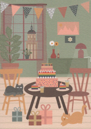 Postkaart Bekurque 14 - Een feestje bij Jaapie en Pippi thuis X12