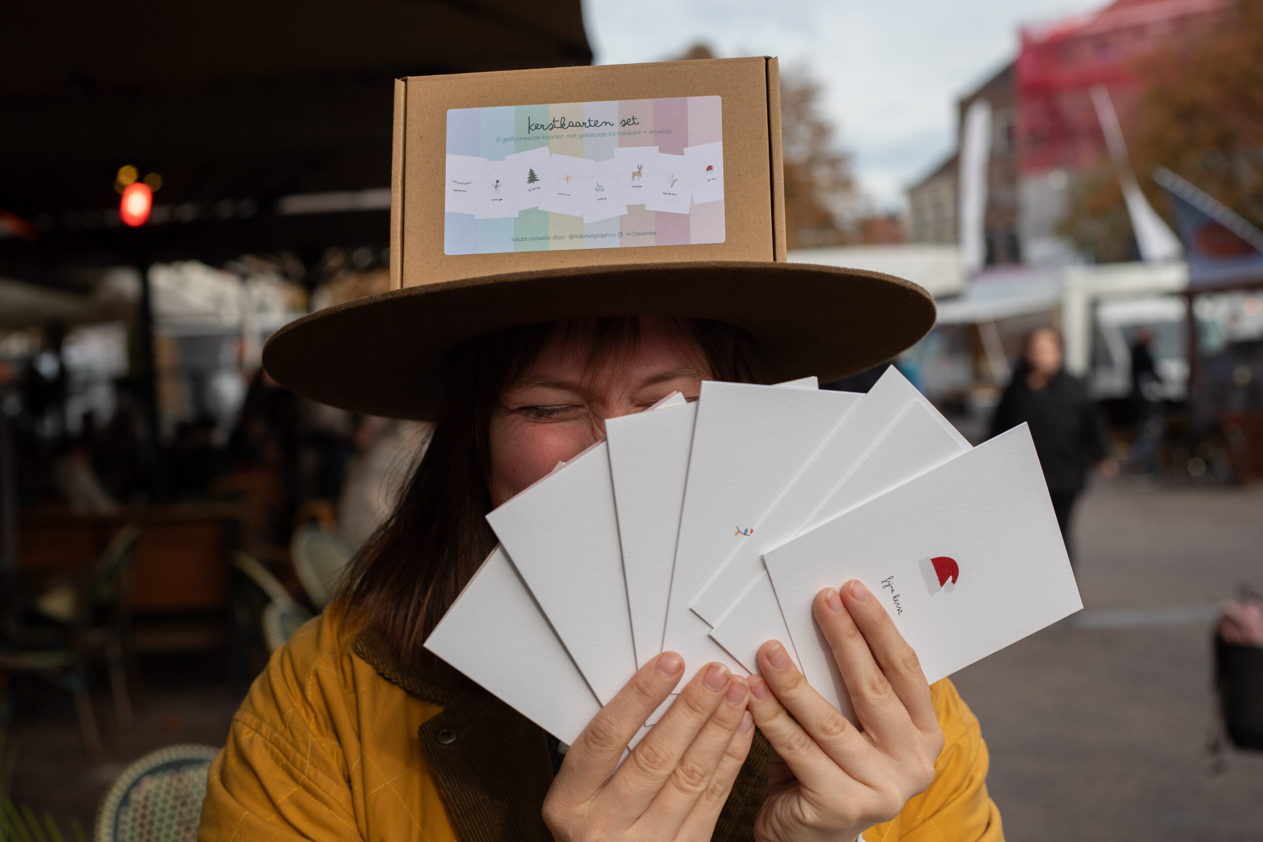 The Happy Few nu ook in kerstkaartenset! Deze kaarten hebben een (blanco) pastel gekleurde binnenkant In het setje zitten 8 kaarten, met iedere kaart een ander ontwerp + kraft enveloppen. Verpakt in een net doosje. Advies verkoopprijs: €12,95 Wees er snel bij, want deze gaan erg hard!