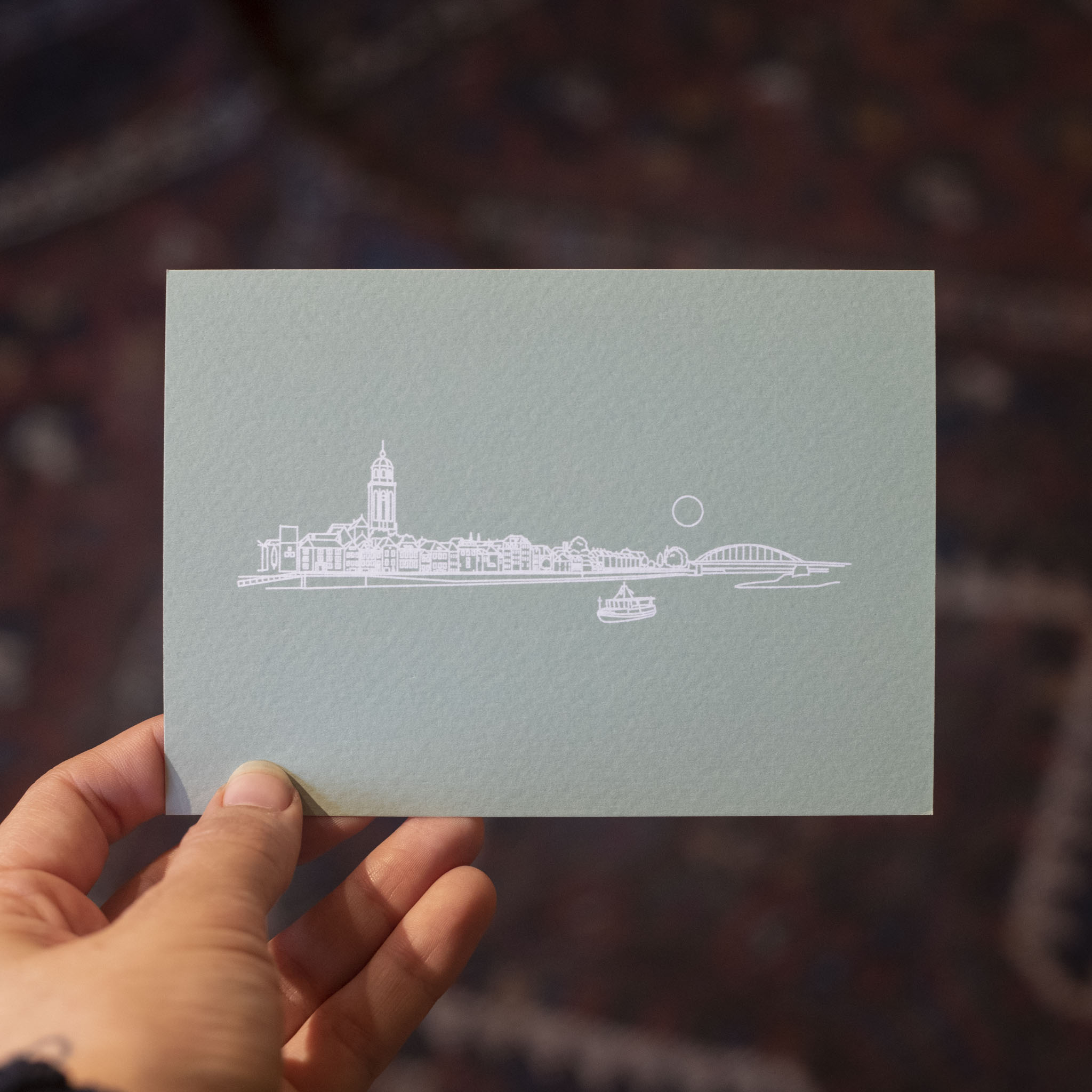 Deze gedetailleerde lijntekeningen van bekende taferelen in Deventer hebben we met veel liefde en aandacht getekend. Op prachtig Italiaans reliëfpapier gedrukt. Mooie, stijlvolle kaarten! Leuk om te sturen, maar ook erg mooi om op te hangen.