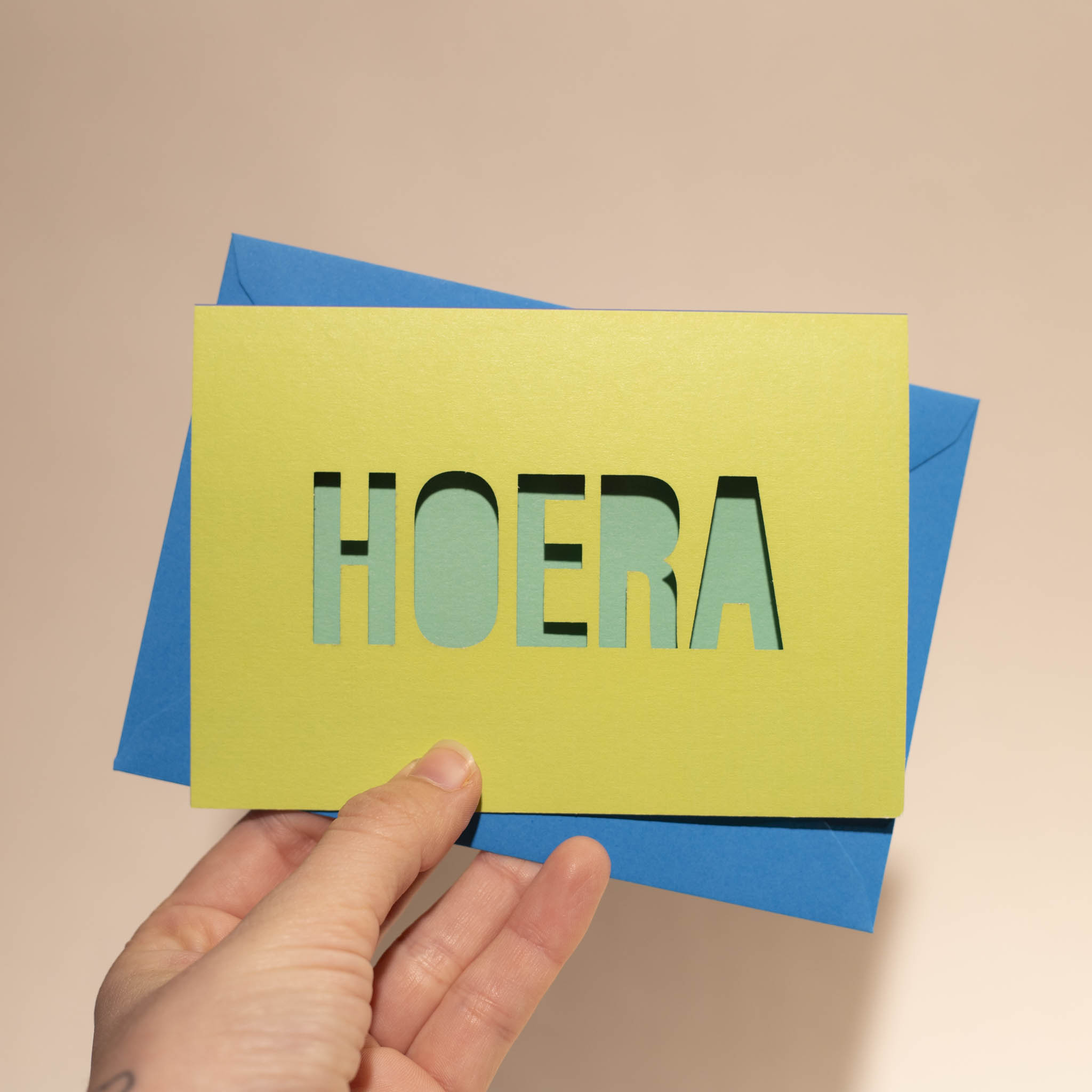 Heel kleurige kaarten met cut-out vorm/woord.