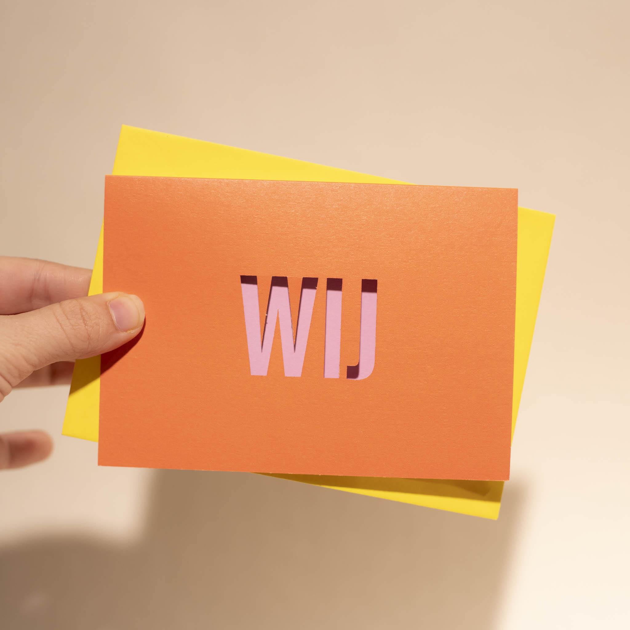 Heel kleurige kaarten met cut-out vorm/woord.