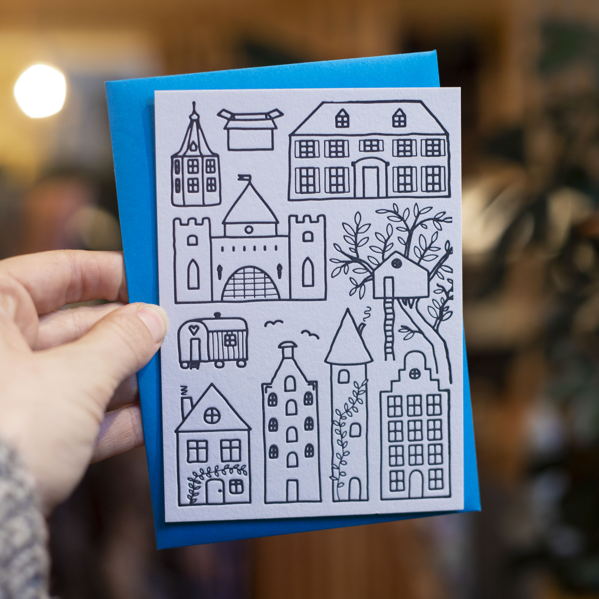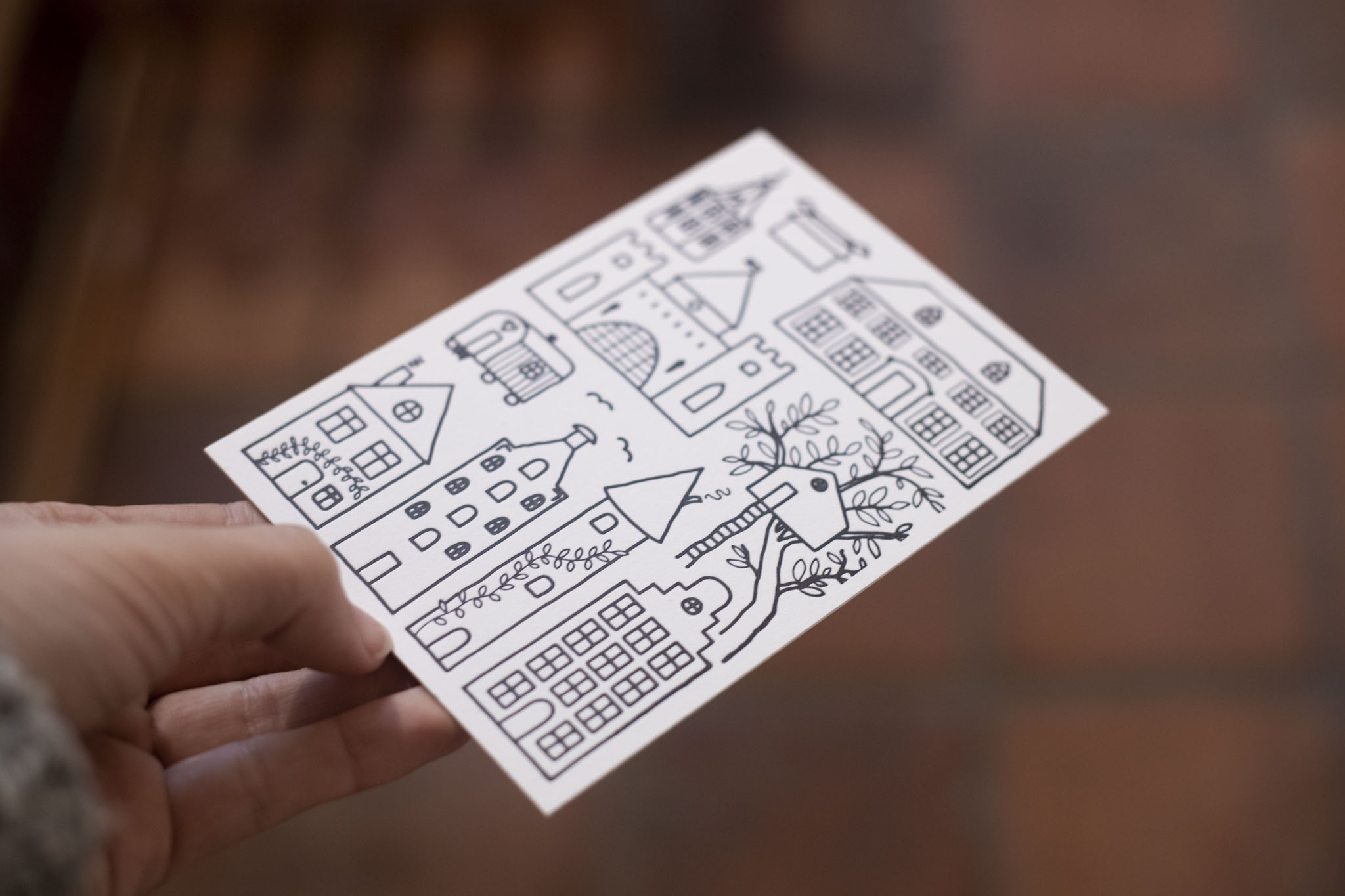 Letterpress postkaart Sounds Sketchy 022 – Huisjes X6